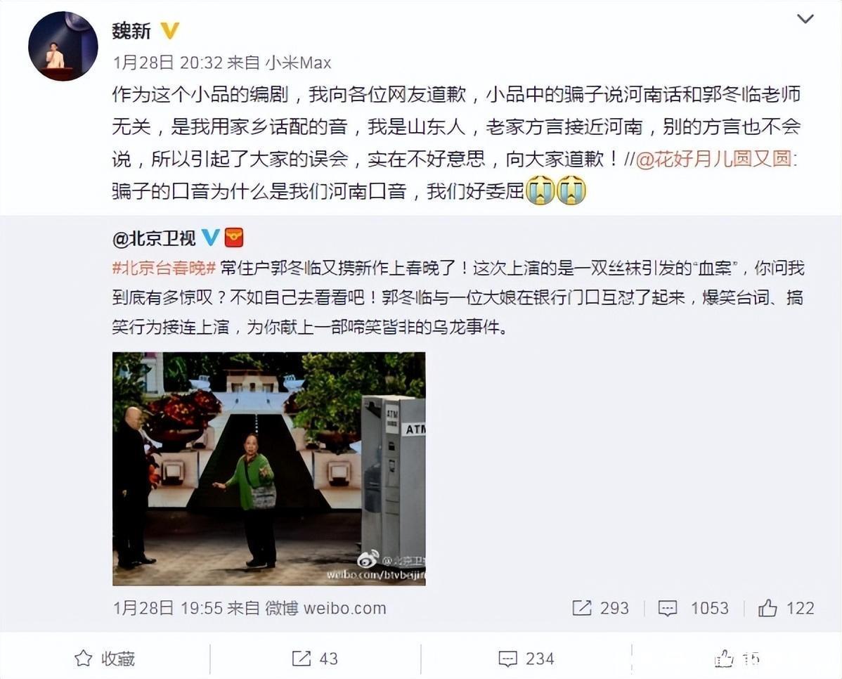 事后郭冬临和小品编剧也立马出面发文道歉,但这件事还是低郭冬临的事业造成了不小的影响。